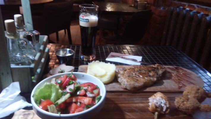 Что касается еды.  Обычный салат из овощей,  который вы делаете летом каждый день у себя дома.  Свинина не очень понравилась.  Как будто потушена. Очень понравился паштет и крылышки. За 15 р жаловаться конечно нельзя.  Но если бы знала,  что будет такая ситуация,  пошла бы в другое место.