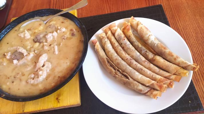- люля-кебаб из мяса свинины и птицы с картофелем, обжаренным с грибами - 200 г/200 г
