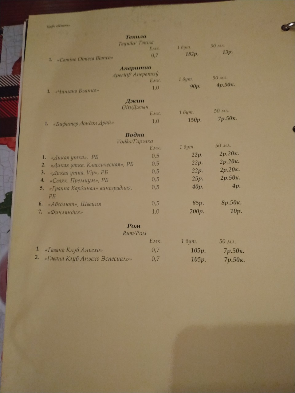 - Стоимость ужина №1/№2 (для двоих): 65 р. 130 р.