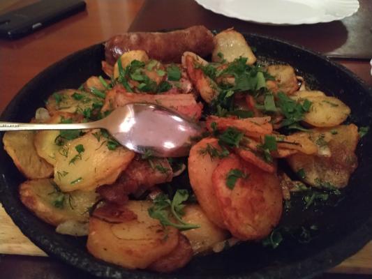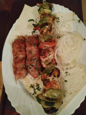 - люля-кебаб из мяса свинины и птицы с картофелем, обжаренным с грибами - 200 г/200 г