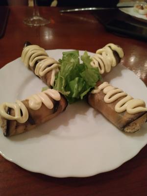 - теплый салат: говядина, баклажаны и вяленые томаты - 220 г/50 г/30 г