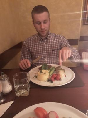 Ужинали 16-го вчетвером с подругами по акции, остались очень довольны: и местом, уютным и комфортным - у камина, и  самим ужином (брали оба варианта: №1 и №2), и обслуживанием: внимательным и ненавязчивым. Блюда ооочень большие, вкусные и красиво оформлены! Десерты тоже порадовали. В общем: спасибо Божене, которая нас так заботливо обслуживала, и "Грюнвальду"! (Не зря такие хорошие отзывы!)))