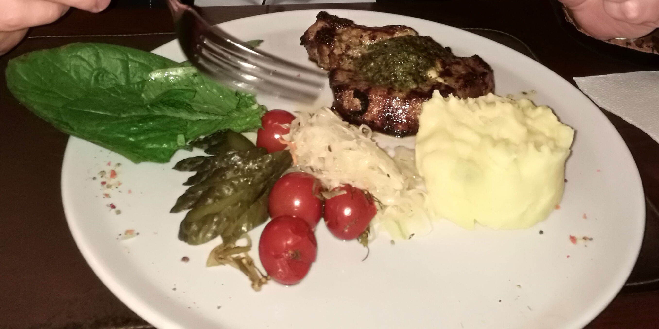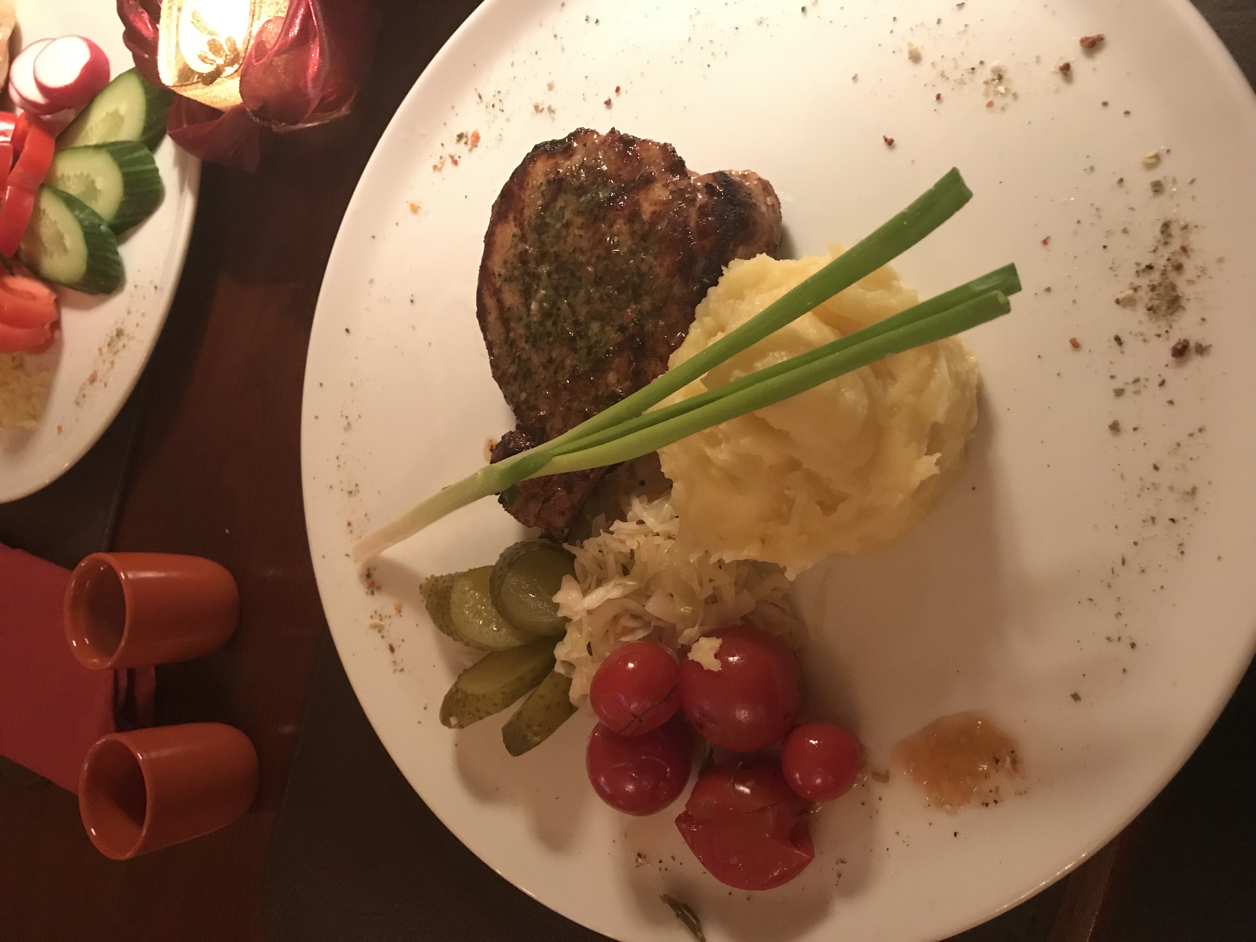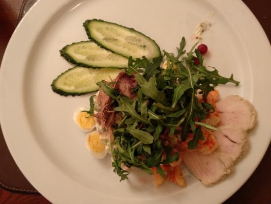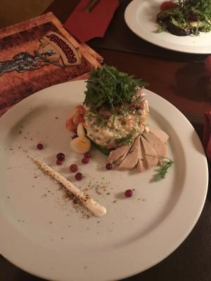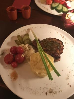 Ужинали по варианту 1, хотя заказывали ужин №2, но вышел казус с официантом и нам принесли блюда из ужина №1. В итоге были очень рады такой случайности, все оказолось очень вкусным, особенно корейка. Место довольно уютное, порции адекватные. Из минусов, то, что тянет из зала для курящих табачным дымом. В целом остались довольны.