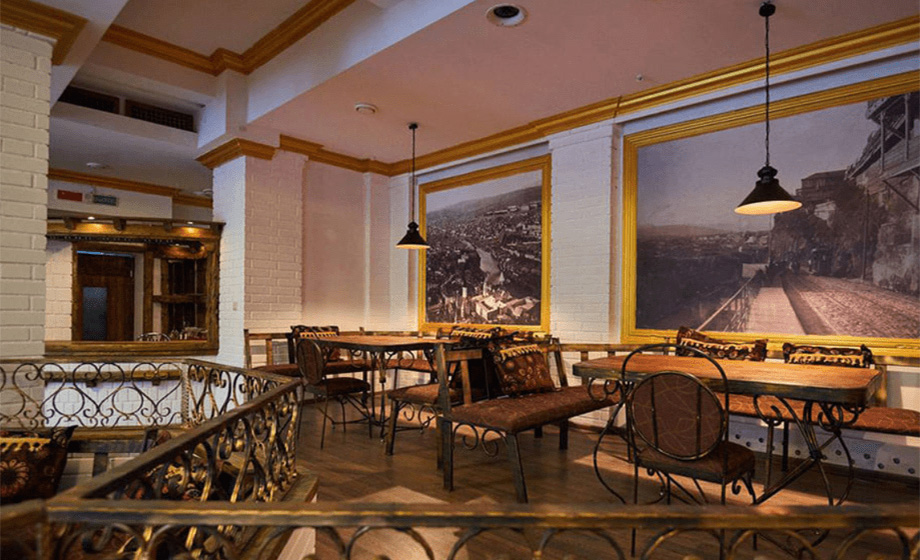 2 этаж (банкетный зал): на втором этаже ресторана располагается отдельный банкетный зал, выполненный в современном стиле "древнего города пылающих небоскребов"- Баку. Светлый, просторный зал, украшением которого несомненно являются: кованые детали, большие панорамные окна, выходящие на уютный внутренний дворик, и конечно прекрасные виды старого города украшающие стены банкетного зала.