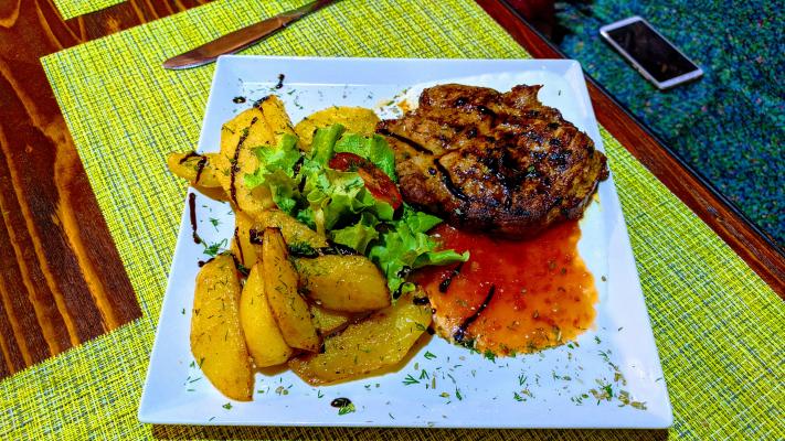 Стейк из свинины в соусе "Баку" с картофельными дольками 150/100/150/1