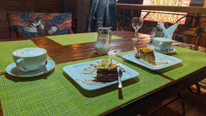 Уютные кресла и диванчики с подушками, репродукции старого Баку на стенах, мягкий свет и приятная музыка - всё это располагает к приятному отдыху.