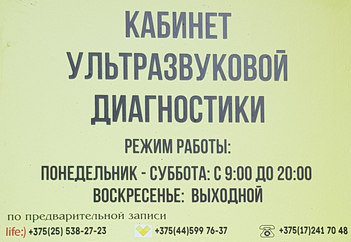 В кабинете работает прекрасный специалист, врач ультразвуковой диагностики первой квалификационной категории, кандидат медицинских наук, доцент Республики Беларусь Спиридонова Нина Анатольевна с 20-летним стажем работы.