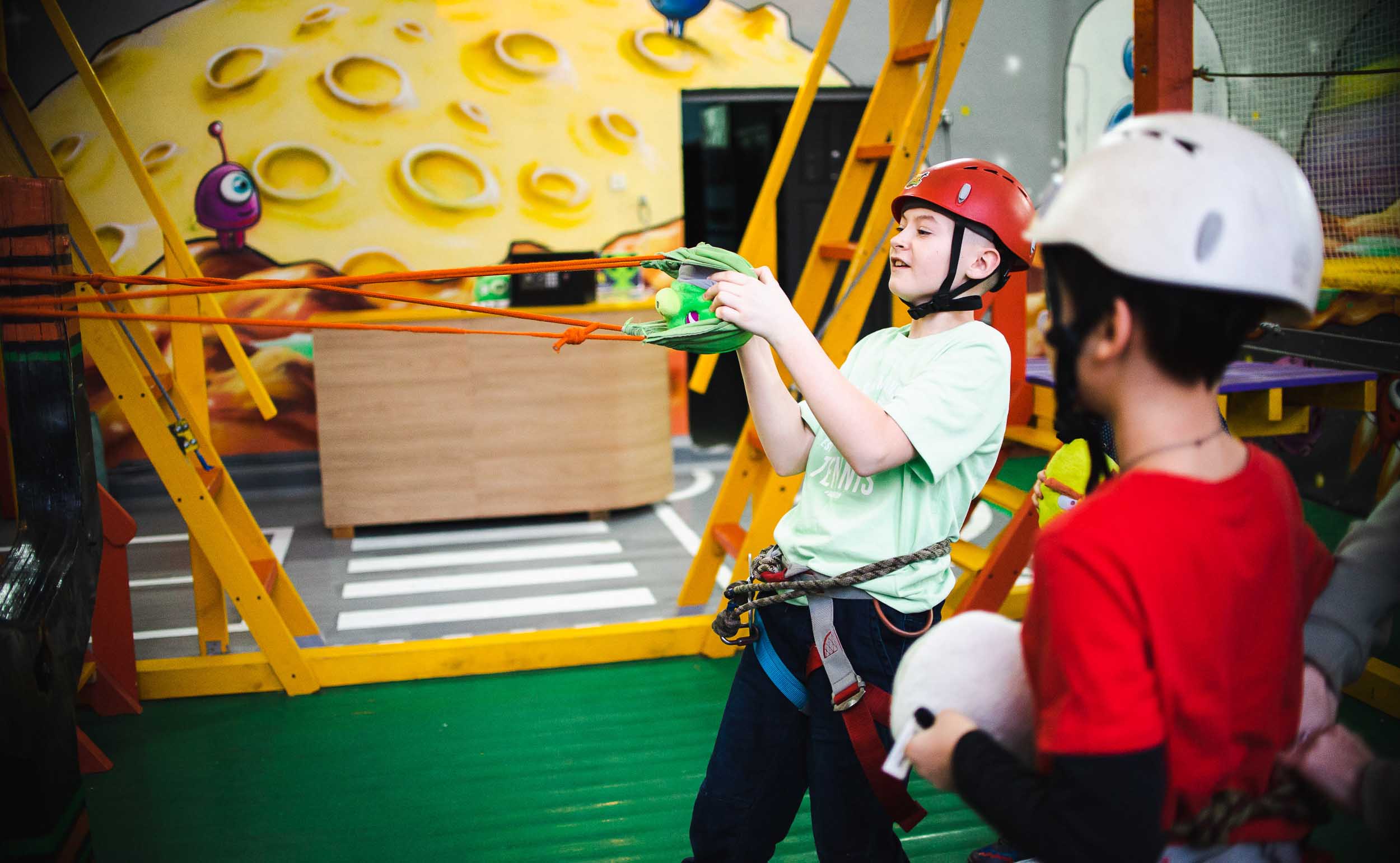- верхний уровень предусмотрен для детей и взрослых от 140 см, высота его 3-4 метра, количество этапов - 7. Включен этап скалодрома.