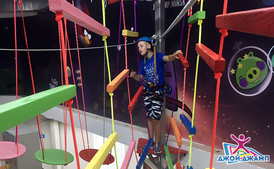 Крытый веревочный парк со скалодромом "Ниндзя парк" от 5 р/час в мире "Джой Джамп"