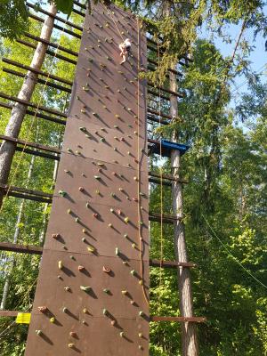 - Комплекс "Веревочный городок 1-й уровень + скалодром 9 м + троллей 120 м" включает: