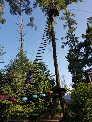 - веревочный парк (веревочный городок 1, 2 и 3 уровня, скалодром 9 и 15 метров, 2 троллейных спуска: 120 и 285 метров)
