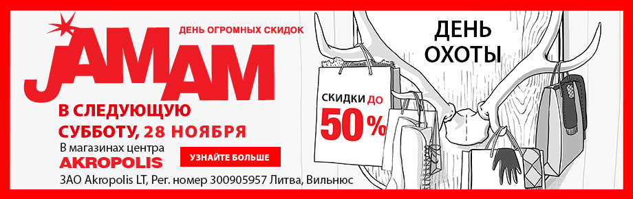Волна скидок акции Jamam обрушится 28 ноября на ТЦ AKROPOLIS - 50% скидки