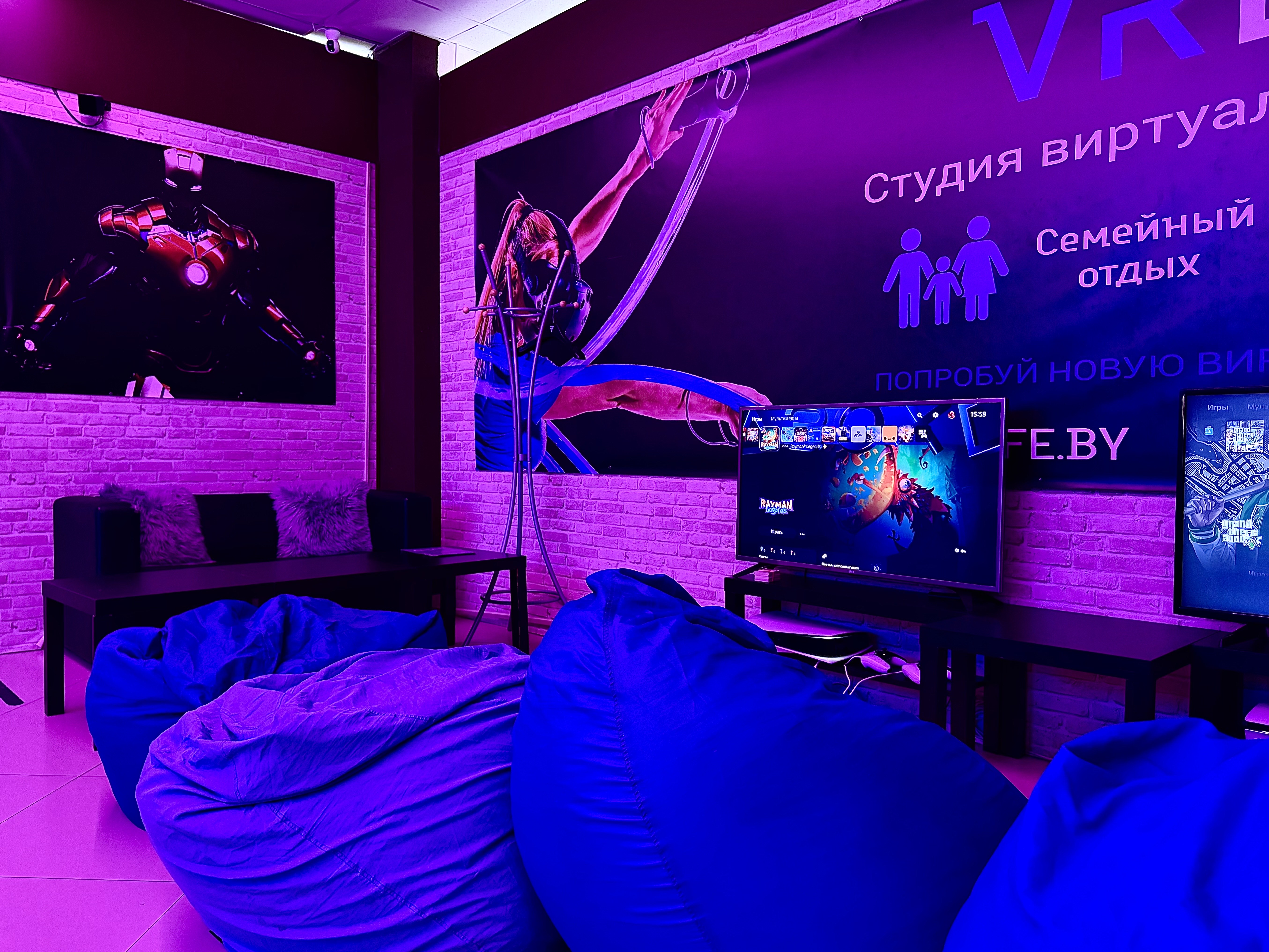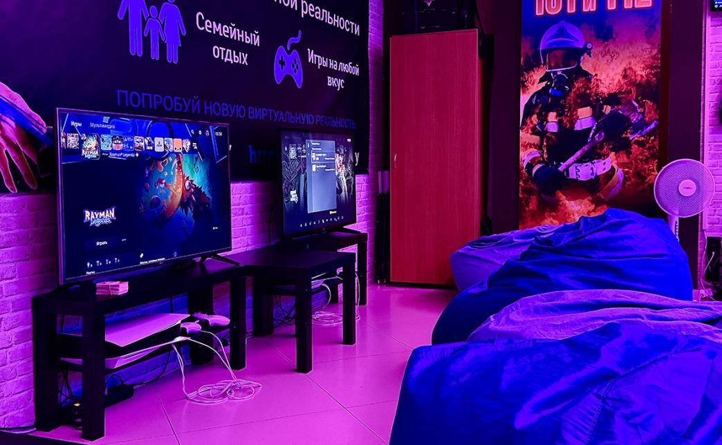 - Наше оборудование: шлем "HTCvive" - 5 шт, беспроводной шлем "HTCvive" - 2 шт, шлем "PSVR2" - 1 шт, "PlayStation 4" - 2 шт, "XboxKinect" ("JustDance", "GuitarHero"), "Dendy" (как в 90-х), автосимулятор (Руль + педали + кресло + шлем VR)