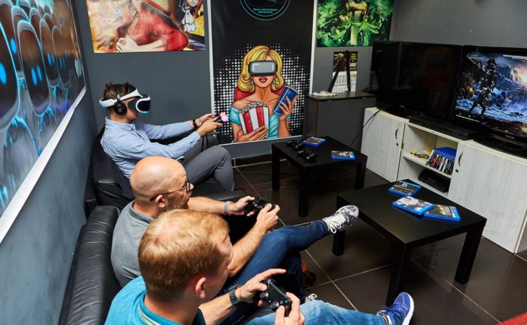 - Наше оборудование: шлем "HTCVIVE" - 4 шт, шлем "PSVR" - 1 шт, "PlayStation 4" - 2 шт.