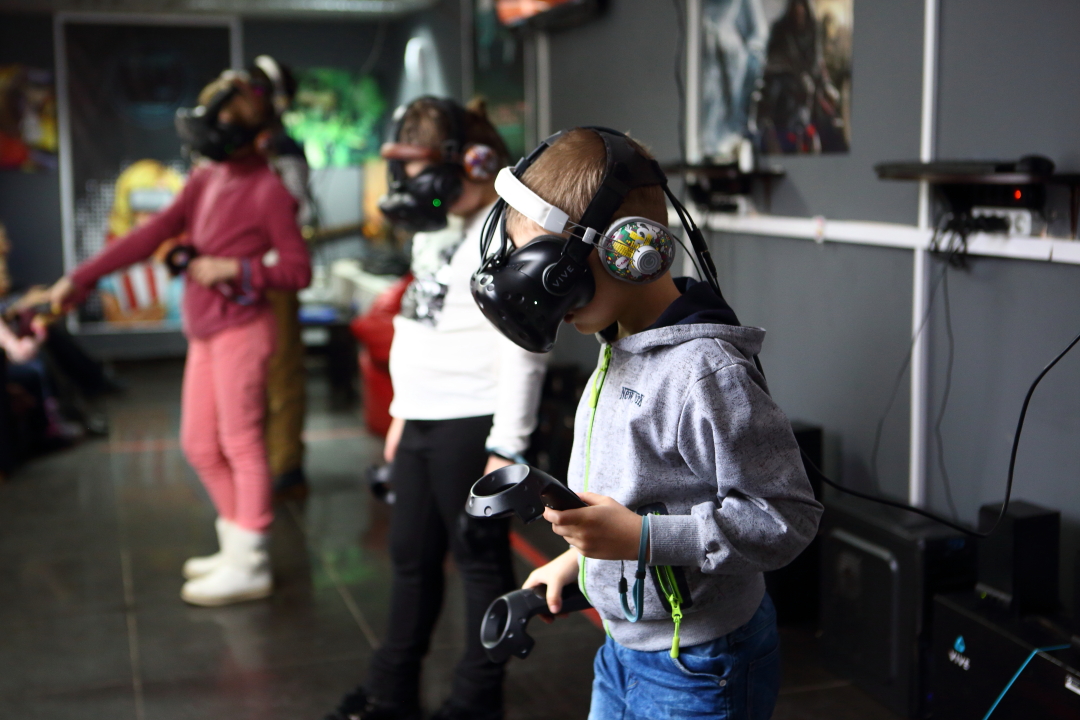 - Наше оборудование: шлем "HTCVIVE" - 4 шт, шлем "PSVR" - 1 шт, "PlayStation 4" - 2 шт.