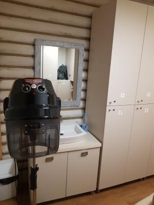 общественная баня. Дверь в женскую раздевалку напротив мужской, люди в коридоре ходят и видят как ты переодеваешься.При открытой двери полная видимость раздевалки, приходится прятаться за шкафчиком в углу. Басейн воняет хлоркой так, что можно задохнуться,солевые стены в принципе не нужны,против этой хлорки.