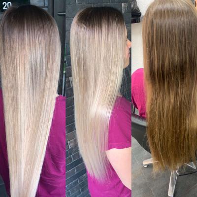 - мытье головы реконструирующим шампунем с кератином и экстрактом бамбука для химически обработанных и поврежденных волос.