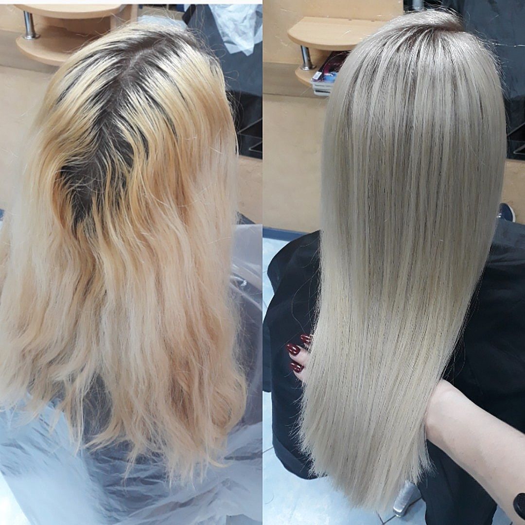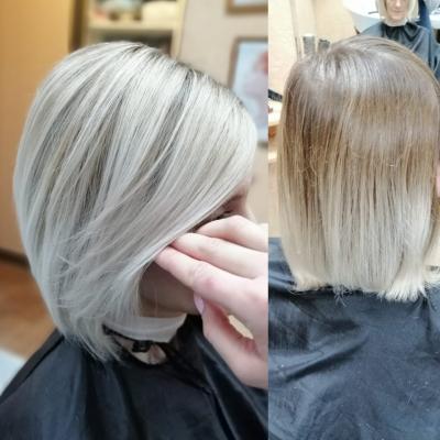 - Тонировка серебристым/фиолетовым шампунем, бальзамом: 10 р.
