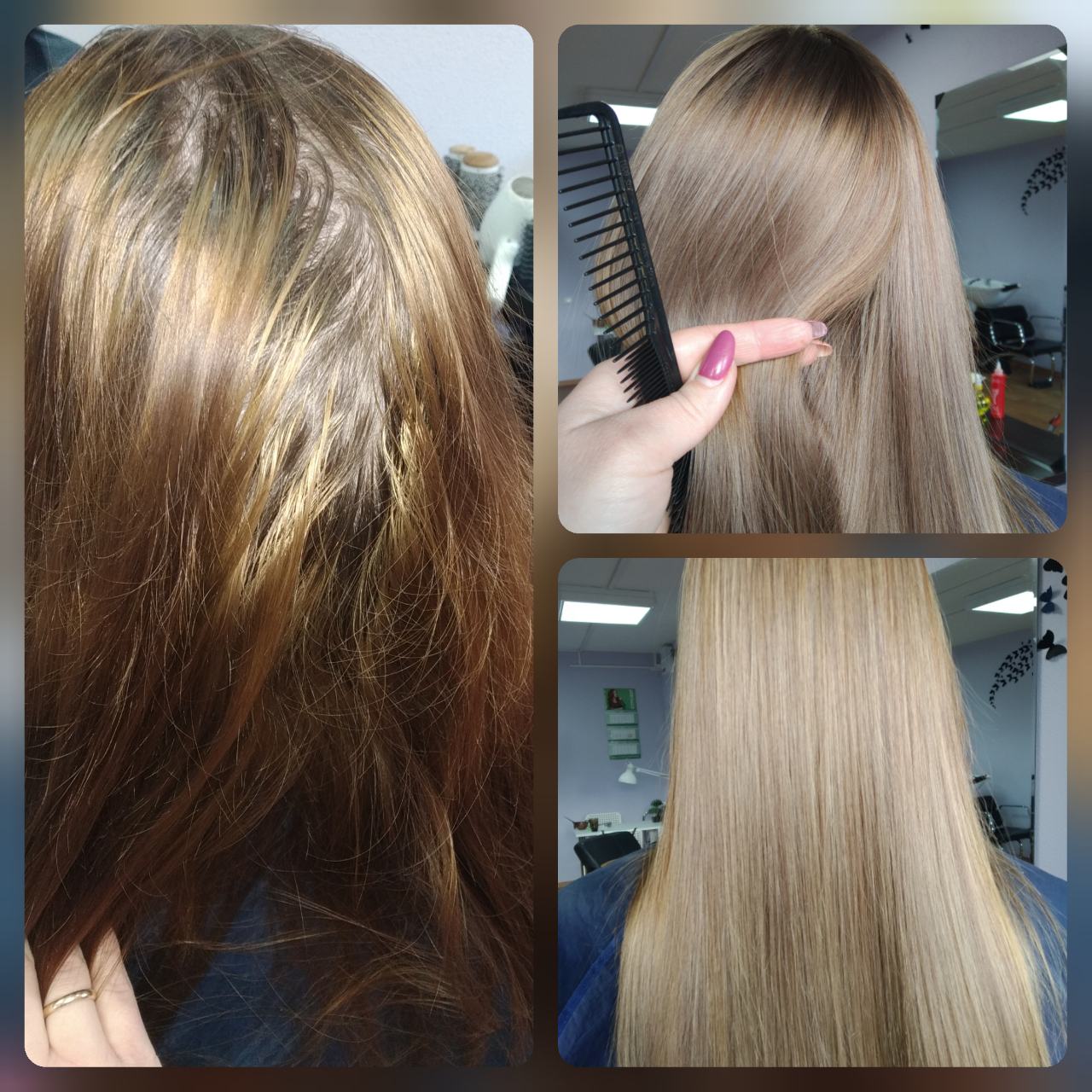 - комплекс №2: окрашивание в один тон + кератиновое восстановление от "KayPro" + сушка по форме: