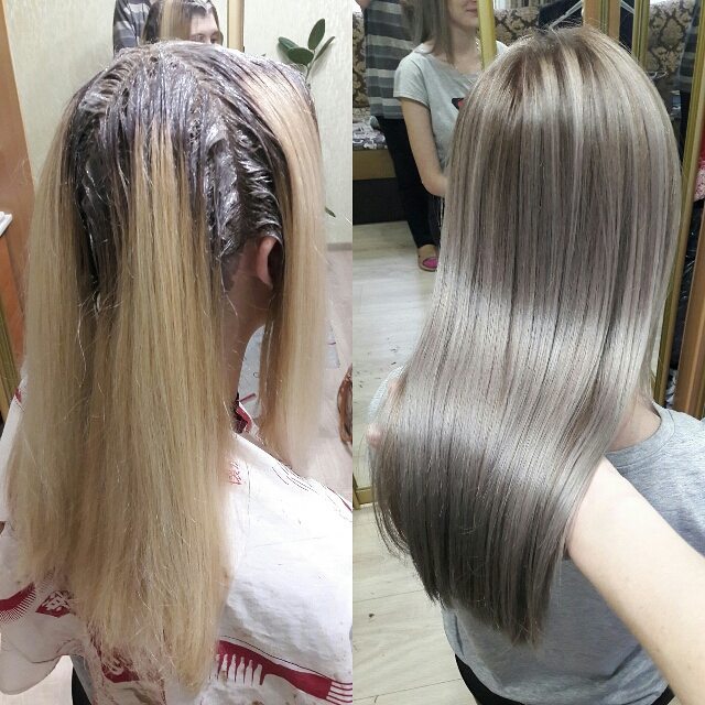 - Тонировка серебристым/фиолетовым шампунем, бальзамом: 10 р.