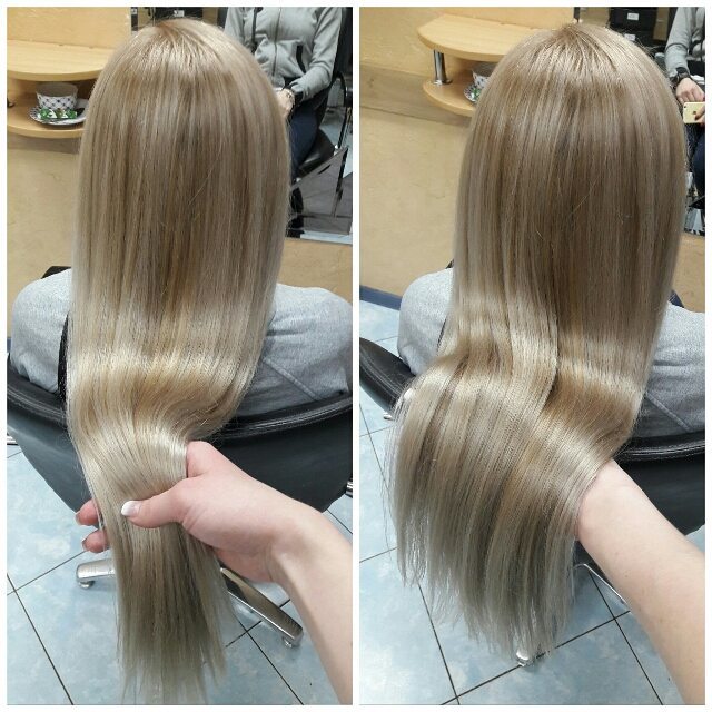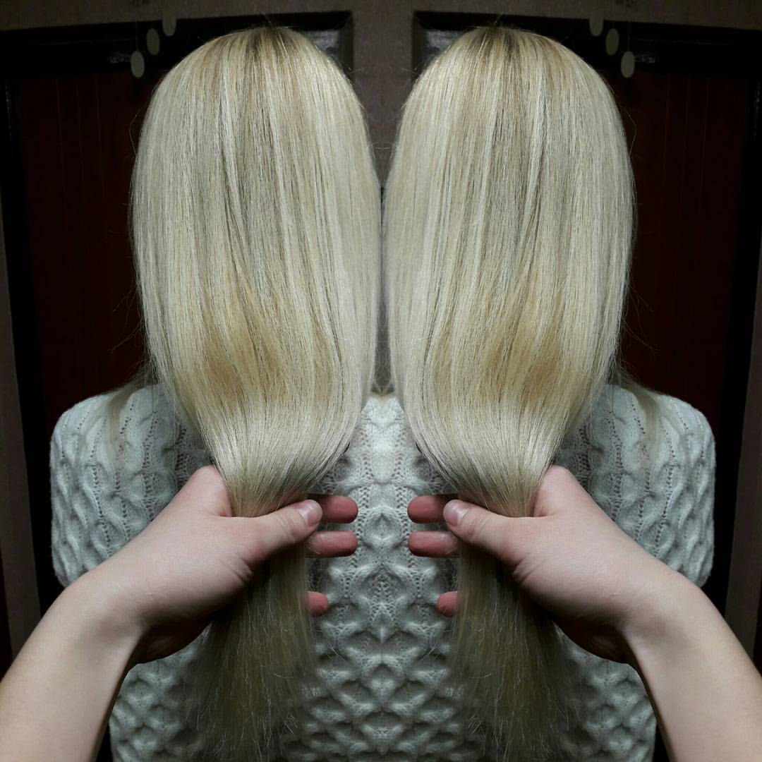 - мытье головы реконструирующим шампунем с кератином и экстрактом бамбука для химически обработанных и поврежденных волос.