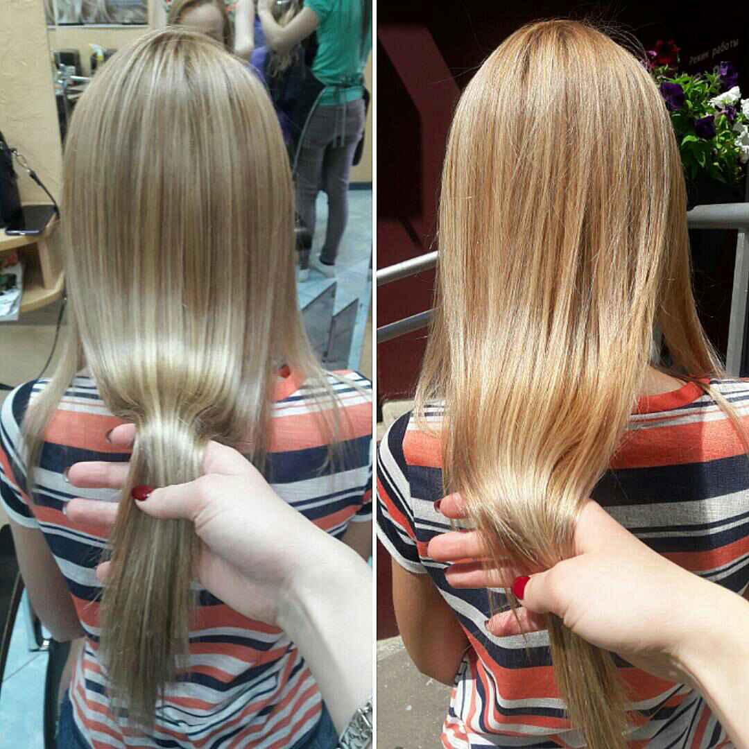 - нанесение 2-фазной реконструирующей сыворотки с кератином или реконструирующего флюида с кератином (на усмотрение мастера)