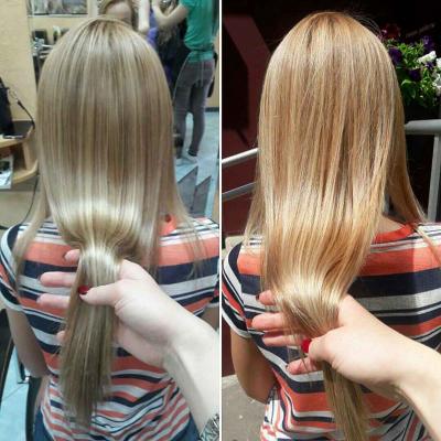 - мытье головы реконструирующим шампунем/кондиционером с растительными пептидами для сильно поврежденных и склонных к ломкости волос