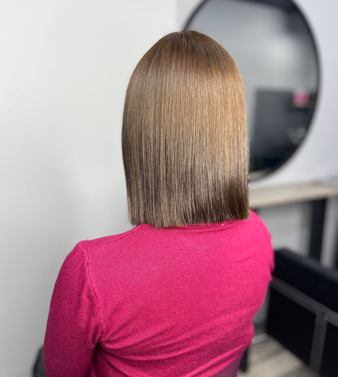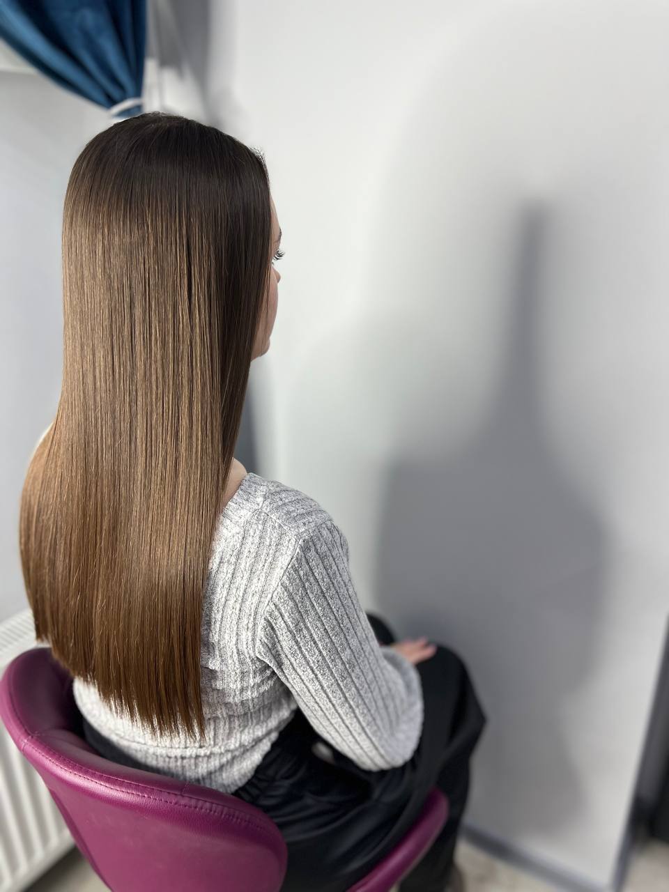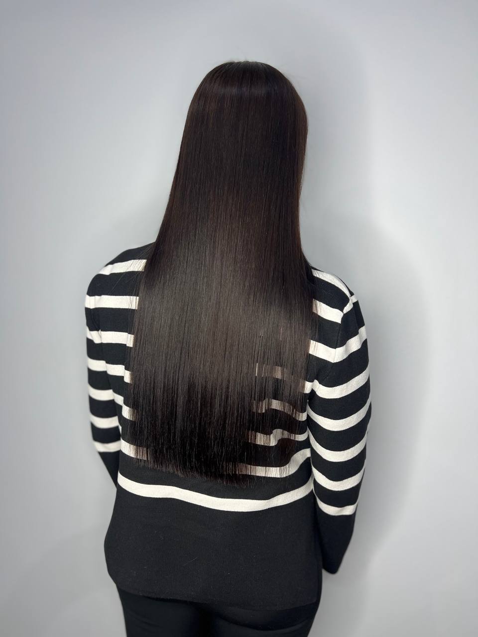Это - выпрямление волос. Классный визуальный эффект от 3 до 7 месяцев. Подбираю составы индивидуально под каждого. С эффектом накопления. Волосы шелковистые , прямые, упрощают сушку и укладку волос , помогает отрастить волосы