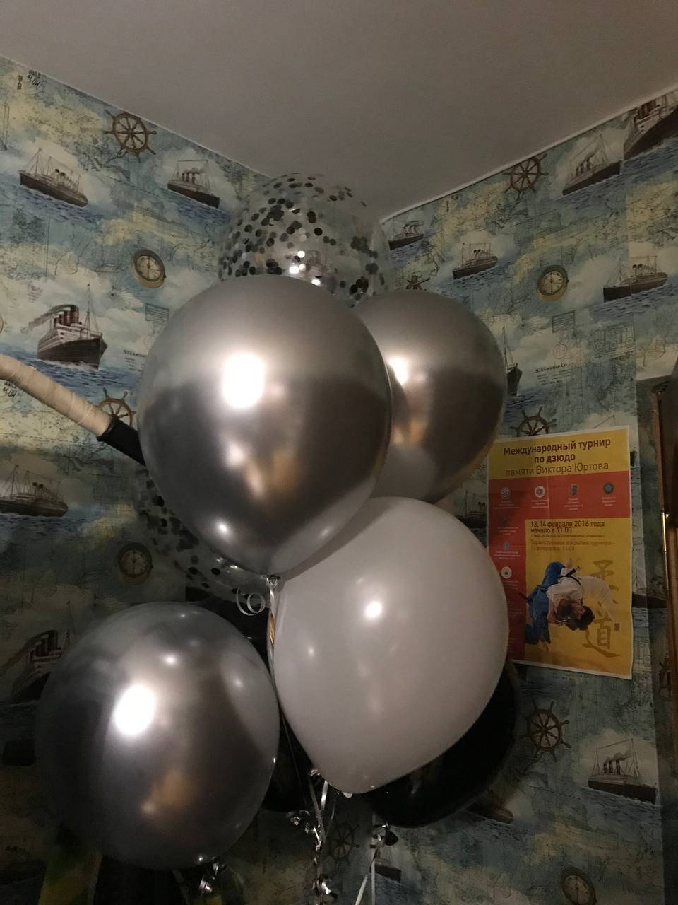 №9 Композиция из шаров с гелием: - шар латексный матовый 12 шт. - шар латексный хромированный 6 шт. - утяжелитель 2 шт. 72 р. 142 р.