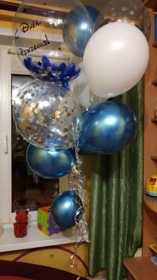 №15 Композиция из шаров с гелием: - звезда фольгированная 3 шт. - шар латексный матовый 2 шт. - шар латексный прозрачный с конфетти 2 шт. - шар латексный хромированный 1 шт. - утяжелитель 1 шт. ![]()