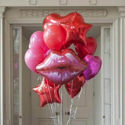 сердце в сердце 102 см 10р. сердца 46 см сатин бордо 5р. латексные сердца 12" с обработкой 1.5р. шар губы 76 см 12р.