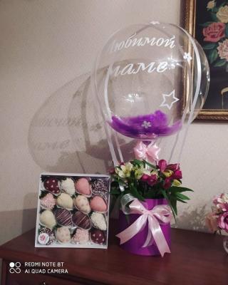 🎈 шар баблс с индивидуальной надписью и живыми цветами в коробке (коробка включена в стоимость): от 75 р. от 105 р.