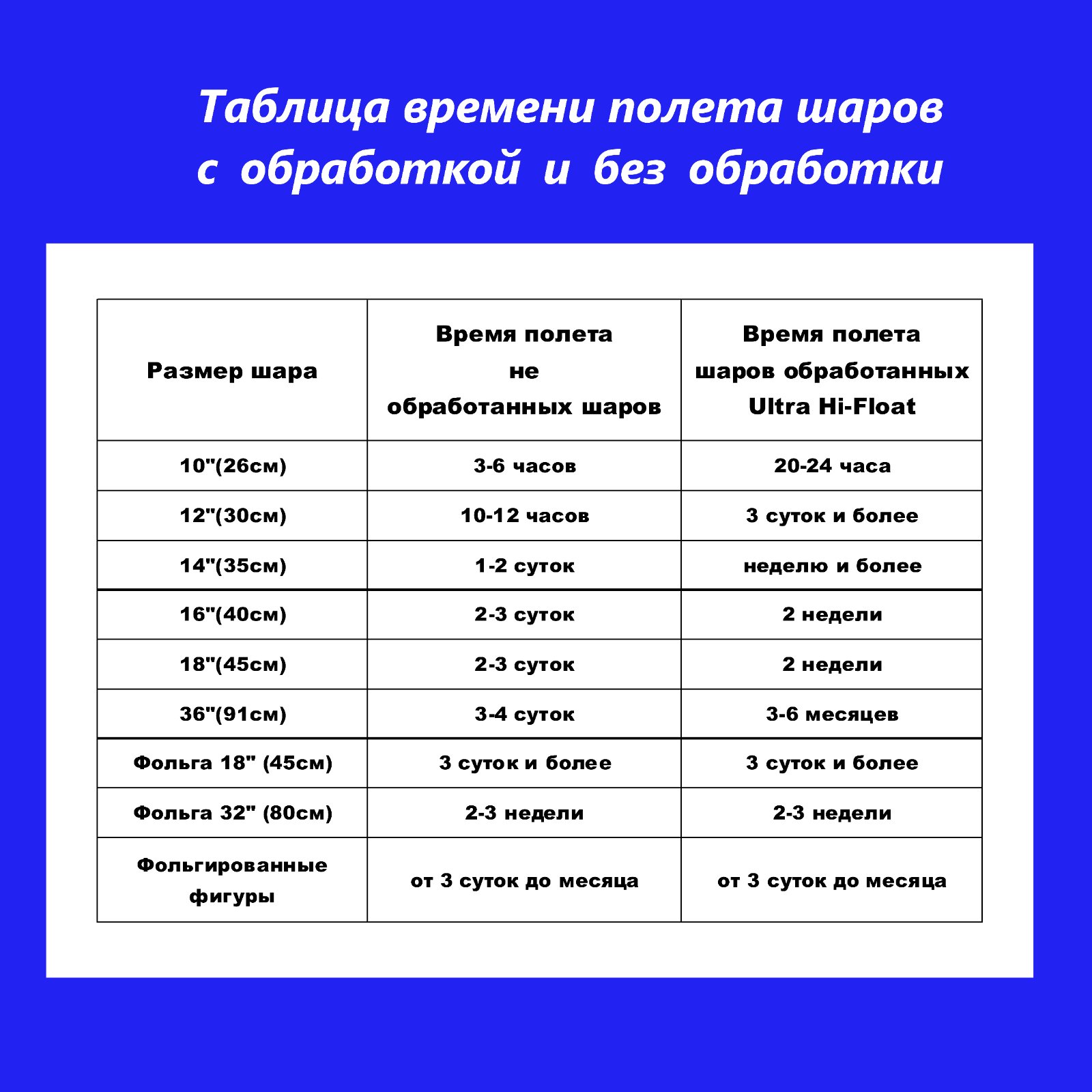 - Время полета шара без обработки: 8-12 часов, с обработкой от 2 суток до 1,5 недель, в зависимости от размера и производителя шаров, а так же от погодных условий