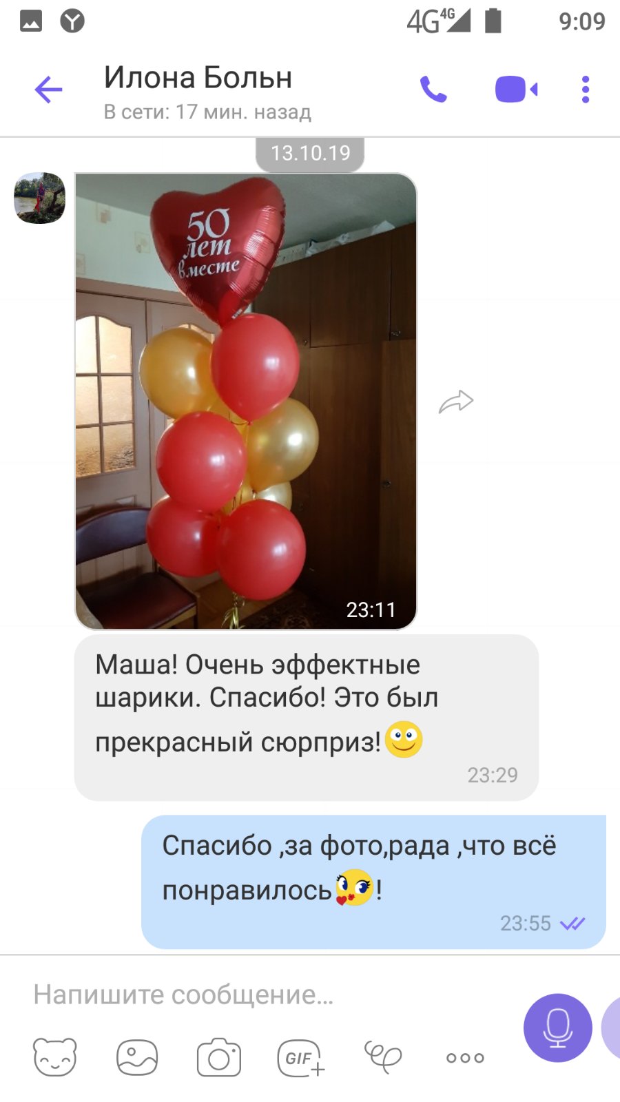 Заказывала шары четыре раза! Сама забирала и с доставкой! Все просто супер!!! Шары ооочень красивые! Всегда со вкусом помогают подобрать композиции! Доставляют всегда вовремя  и в удобное время! Очень довольна, буду заказывать ещё! 💛