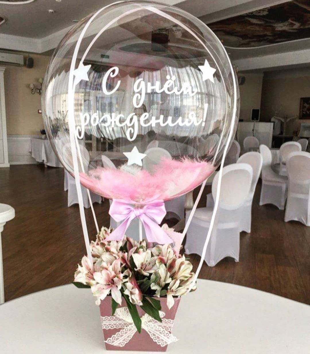 🎈 шар баблс с индивидуальной надписью и живыми цветами в коробке (коробка включена в стоимость): от 75 р. от 105 р.