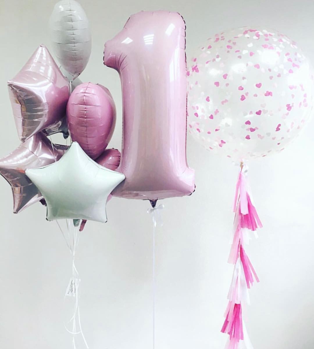 Добрый день! Цифра двойная - от 28р, фонтан из 7 шариков фольгивированных без рисунка-35р, шар баблс с конфетти 11р,кисточка тассел 1р за шт ) итого:79р