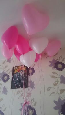 Заказывал для девушки на 14 февраля, шарики с сердечками, до сих пор ещё висят.
