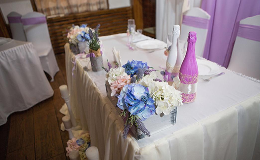 - Декор столов и 50 стульев гостей (включает в себя оформление столов юбками, стульев – чехлами и бантами плюс композиции на стол гостей)