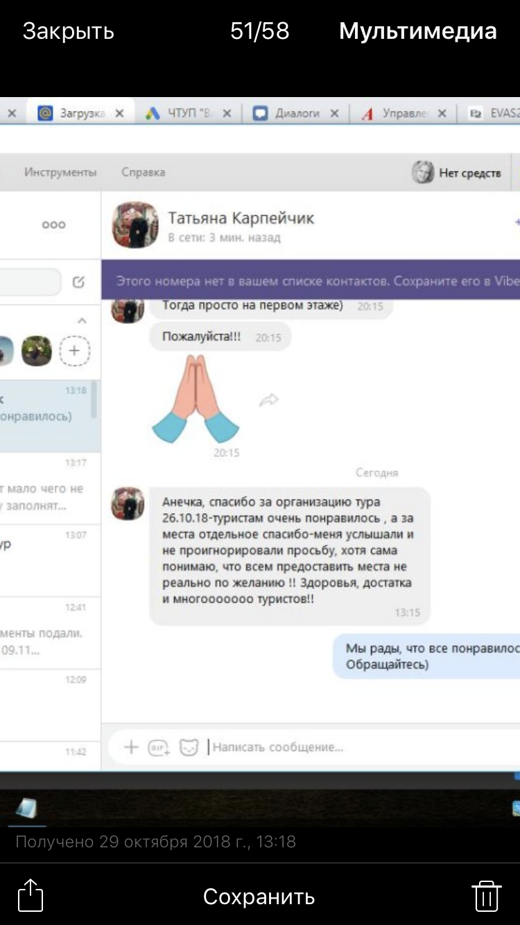 Хочу сказать спасибо за прекрасные выходные. Отдельное спасибо Дмитрию, который нас сопровождал за такт, терпение, прекрасные организаторские способности, которым удивляюсь сильно, нас если я не ошибаюсь в автобусе было 80 человек и большинство со своими тараканами в голове. В восторге от экскурсовода Натальи, которая провела нас по Риге и Юрмале своими маршрутами. Всем, кто был с нами в автобусе, а это люди разных возрастов, в том числе и детки, привет и благодарность нашим соседям по автобусу, что были сплоченной командой. Провели чудесный вечер в ресторане Риги с местным колоритом. А вот шоппинг в Вильнюсе повторим с удовольствием с вашим агентством, кодик на скидку я уже взяла. Путешествовать очень люблю, но никогда не оставляла отзывы. С дебютом меня!