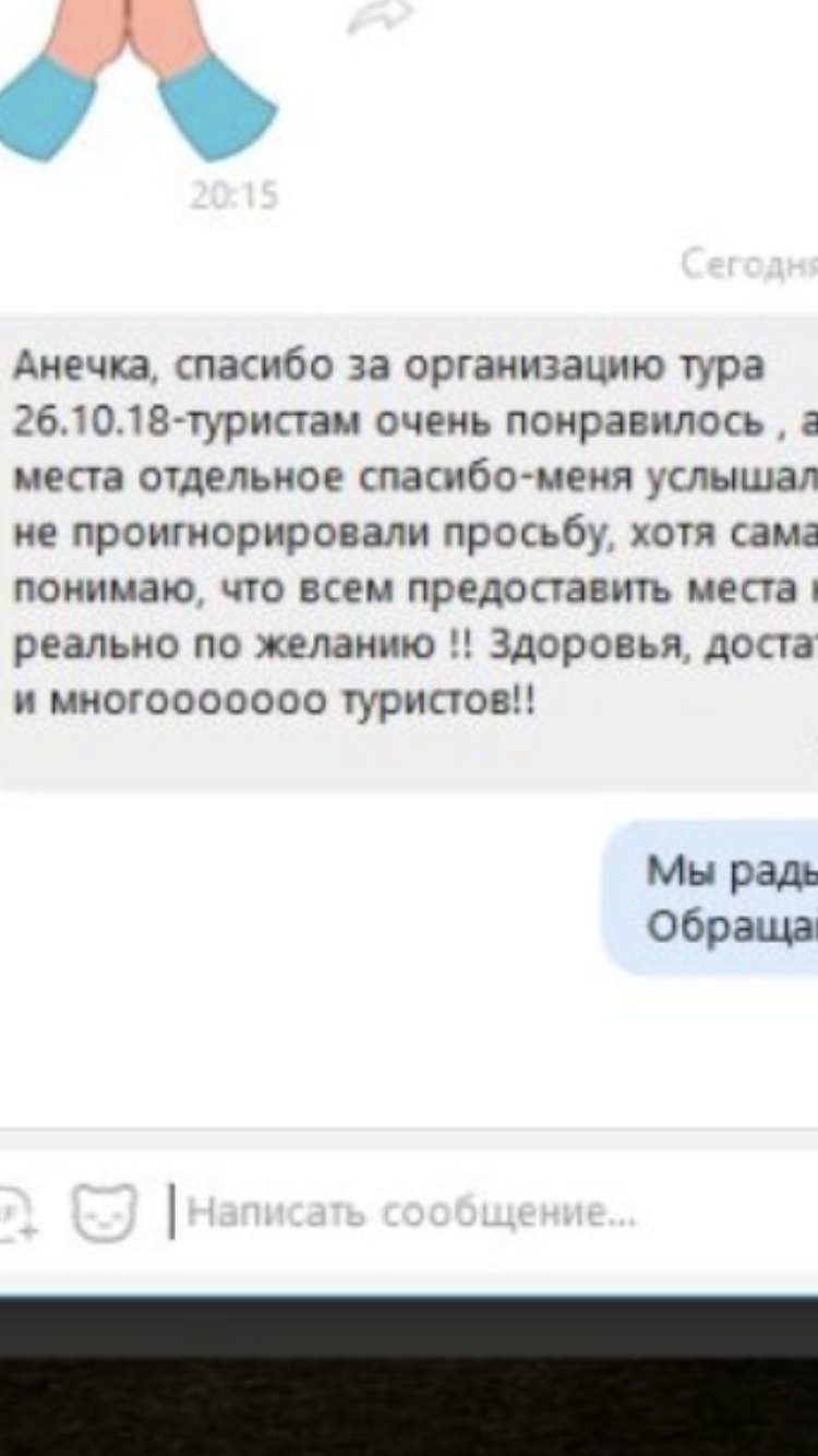 Добрый вечер Скворцова Виолетта, благодарим Вас за оставленный отзыв, будем рады видеть вас и в дальнейших наших турах. С уважением ВладиславаТур.