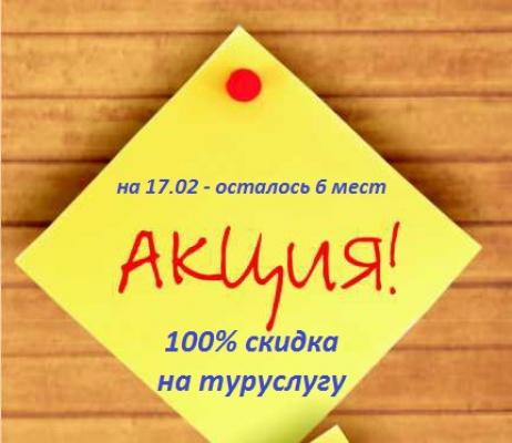 УВАЖАЕМЫЕ ТУРИСТЫ, ОБРАЩАЕМ ВАШЕ ВНИМАНИЕ НА ВЫЕЗД 17.02 - АКЦИЯ!!! АКЦИЯ!!! ОСТАЛОСЬ СВОБОДНЫХ 6 МЕСТ!!! 100% СКИДКА НА ТУРУСЛУГУ!!!