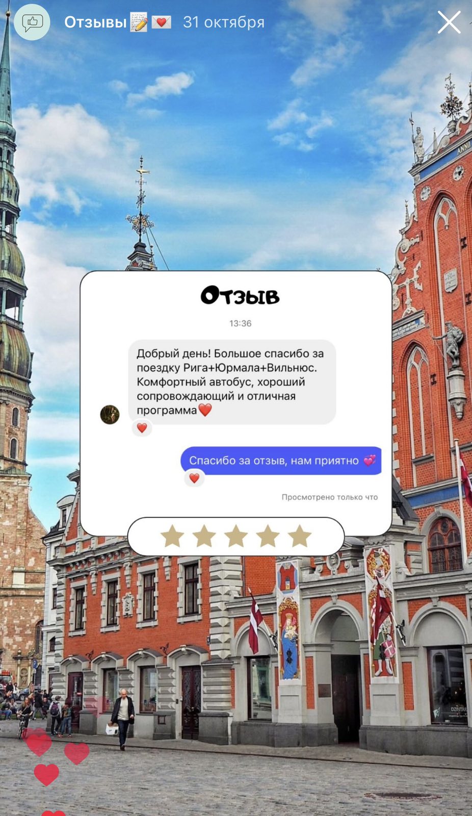 Хотим с сестрой выразить благодарность за тур Рига,Юрмала и Вильнюс (26-28 мая 2023). Все организованно на хорошем уровне, Дмитрий отличный руководитель, в тч и сопровождающий был нашего тура. Хорошая маршрутка. Если обращаться, то только в это турагенство, учитывают пожелания туристов