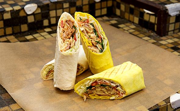 - шаурма по гречески (капуста, морковь, помидоры, огурцы, соус (чесночный или острый), сыр фета, маслины, мясо курицы, 400 г)