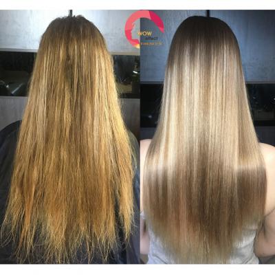 Поврежденные волосы, потерявшие прежний блеск и здоровье, преображаются уже после первой процедуры. Увлажняющий и выпрямляющий эффект особо подчеркивает яркость и эластичность восстановленных волос.