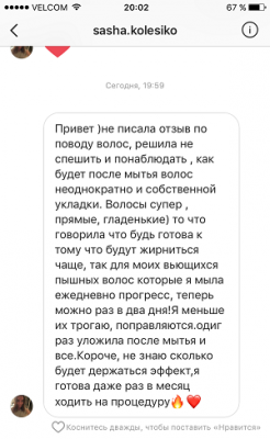 - Блеск, сила, насыщение волос кератином