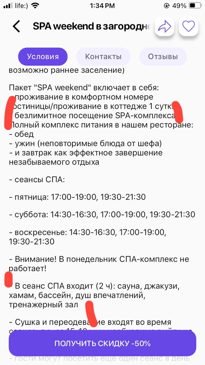 - Промокод дает право на скидку 50% на пакет услуг "SPA weekend для двоих" в загородном комплексе "Ратомка"