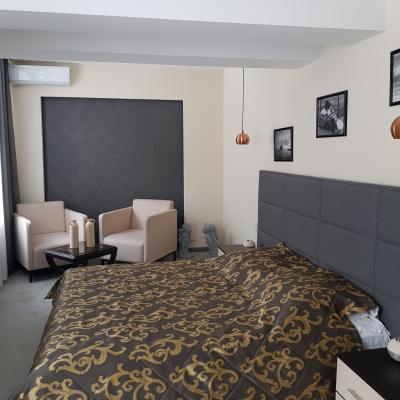 - В номерах Люкс и Полулюкс есть халаты, тапочки, 2 бутылки питьевой воды, гель и шампунь