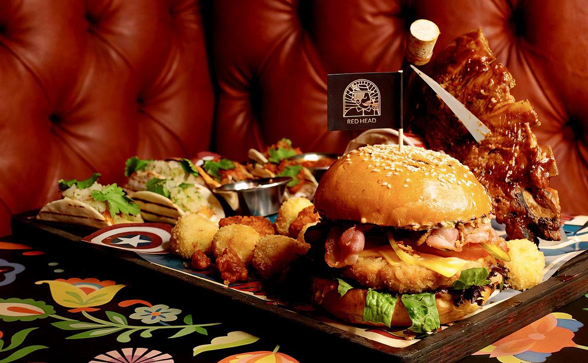 Бар "Red Head" предлагает гостям сытные и калорийные блюда американской кухни, адаптированные под вкусы белорусов. Разнообразие позиций в меню позволит посетителям выбрать еду по предпочтениям: от холодных закусок до лакомых десертов. Любители фастфуда могут полакомиться крафтовыми бургерами или хот-догом с хрустящим луком и пикули. Кроме того, меню предусматривает супы, салаты, стейки, ребрышки и закуски к пенным напиткам.
