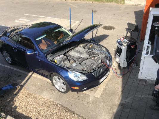 - откачку и заправку масла с ультрафиолетовой присадкой