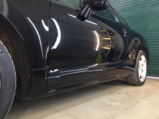 3 этап: Защитный. После полировки кузова, мы тщательно проверяем кузов на наличие голограмм (голограммы - это мельчайшие риски, размером примерно 0,76-0,38 микрометров). Убедившись в отсутствии голограмм, наносим защитную пасту или жидкое стекло, керамическое покрытие (оговаривается с клиентом).